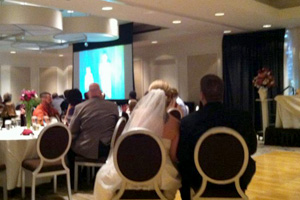 Allows guests to see you during your first dance on a screen, as well as many of the music videos to go along with your choice of music. It takes your party to new heights.